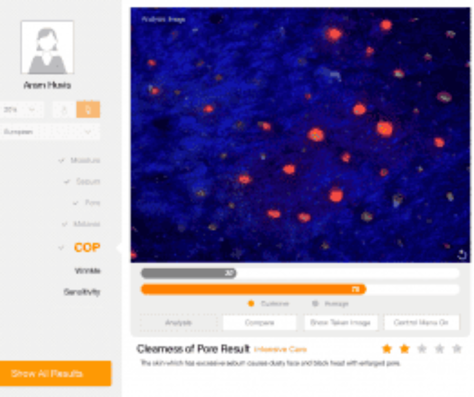 Podczas badania cery otrzymasz pełen dostęp do szczegółowych informacji o stanie twojej skóry.