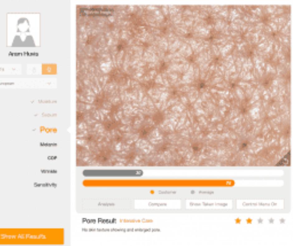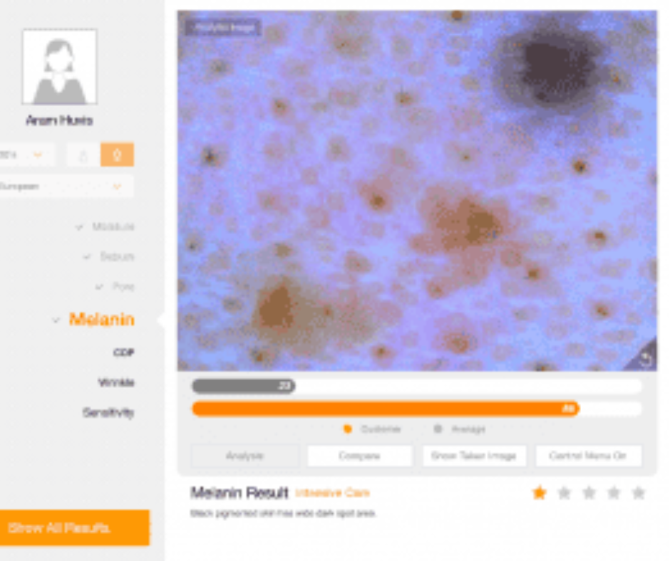 Korzystamy z zaawansowanej technologii analizy skóry API, która pozwala precyzyjnie ocenić takie parametry jak poziom nawilżenia, elastyczność, obecność przebarwień czy stany zapalne.